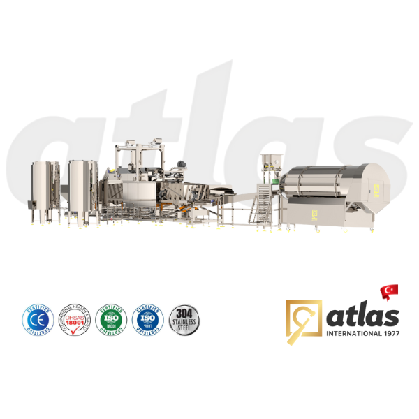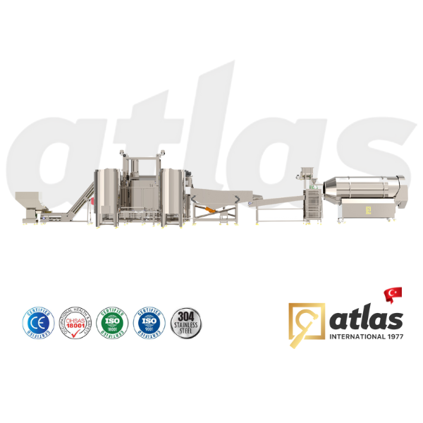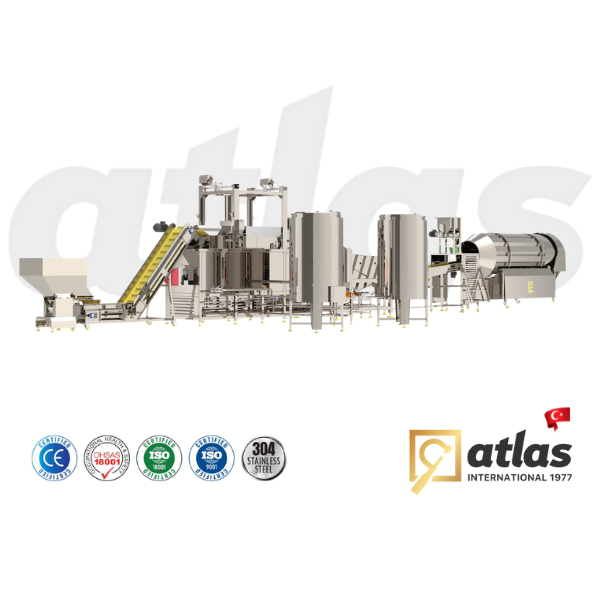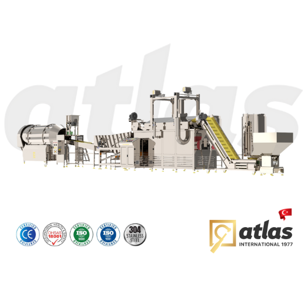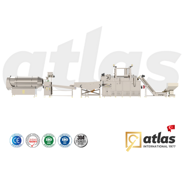 The line frying all kinds of pellets made of potato powder, wheat and corn